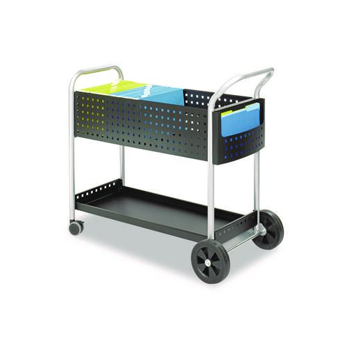 Scoot Dual-Purpose Mail and Filing Cart, Metal, 1 Shelf, 2 Bins, 22.5" x 39.5" x 40.75", Black/Silver