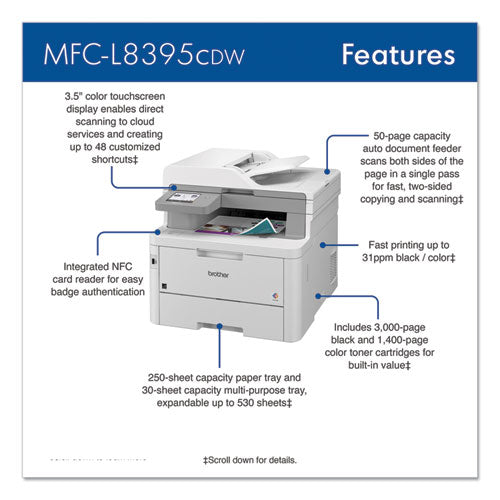 Workhorse MFC-L8395CDW Digital Color All-in-One Printer, Copy/Fax/Print/Scan