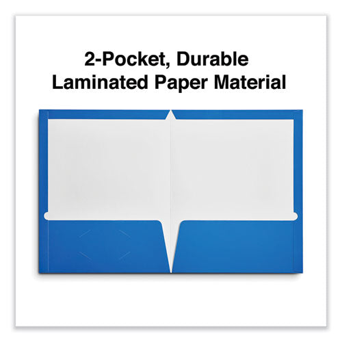 Laminated Two-Pocket Folder, Cardboard Paper, 100-Sheet Capacity, 11 x 8.5, Blue, 25/Box