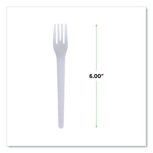 Plantware Compostable Cutlery, Fork, Plastic, Pearl White, 50/Pack, 20 Packs/Carton