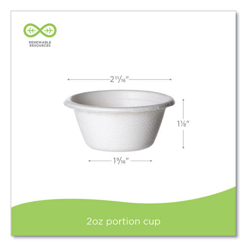 Molded Fiber Portion Cups, 2 oz, Sugarcane, White, 2,500/Carton