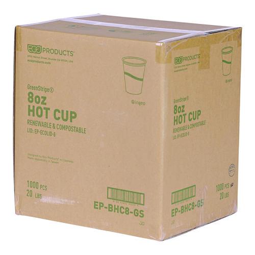 GreenStripe Renewable and Compostable Hot Cups, 8 oz, Paper, White/Green, 50/Pack, 20 Packs/Carton