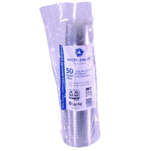 Recycleware Round Deli Container, 32 oz, 4.6" Diameter x 5.8" h, Clear, Plastic, 500/Carton