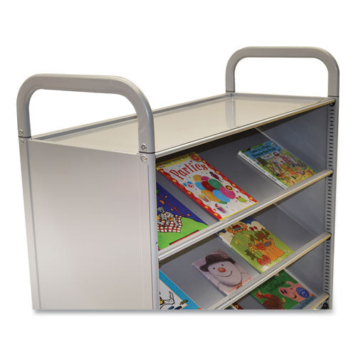 Gratnells Callero Plus Tilted Shelf Trolley, Metal, 3 Tilted Shelves, 1 Flat Shelf, 40.6" x 17.3" x 41.5", Silver