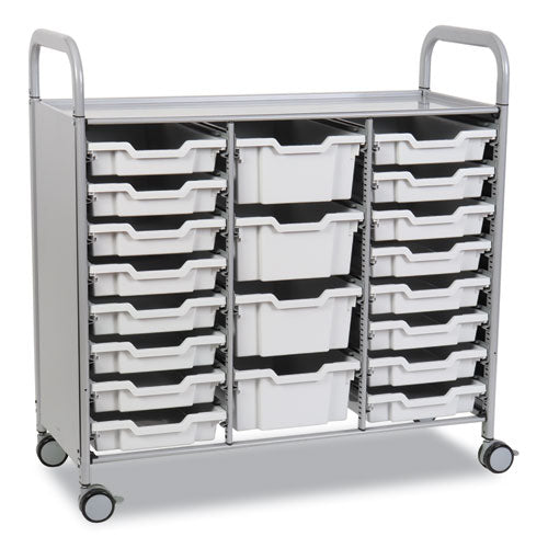 Callero Plus Treble Column Trolley Set 13, Metal, 1 Shelf, 12 F2 Deep Bins, 40.6" x 17.3" x 41.5", Silver/Light Gray