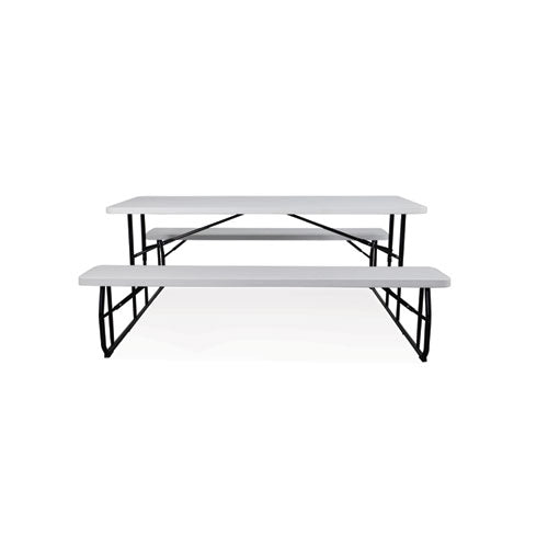 IndestrucTable Classic Folding Picnic Table, Rectangular, 71" x 63" x 18" to 29", White