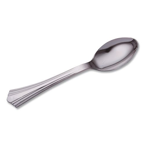 Heavyweight Plastic Spoons, Reflections Design, Silver, 600/Carton