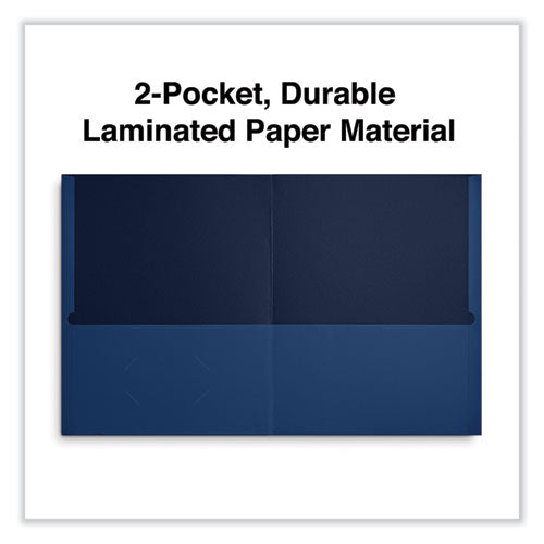 Two-Pocket Portfolio, Embossed Leather Grain Paper, 11 x 8.5, Dark Blue, 25/Box