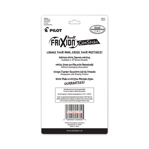 FriXion ColorSticks Erasable Gel Pen, Stick, Fine 0.7 mm, Assorted Ink and Barrel Colors, 5/Pack