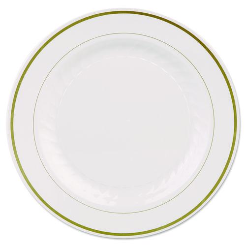 Masterpiece Plastic Plates, 7.5" dia, Ivory/Gold, 10/Pack, 15 Packs/Carton