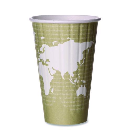 World Art Renewable and Compostable Hot Cups, 16 oz, Paper, Moss, 50/Pack
