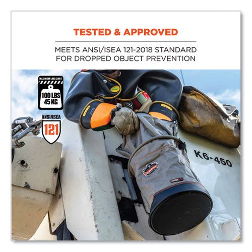 Arsenal 5976 XL Hoist Bucket Tool Bag with Swiveling Carabiner and Zipper Top, 16 x 16 x 20, Gray