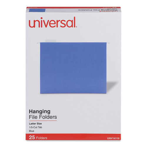 Deluxe Bright Color Hanging File Folders, Letter Size, 1/5-Cut Tabs, Blue, 25/Box