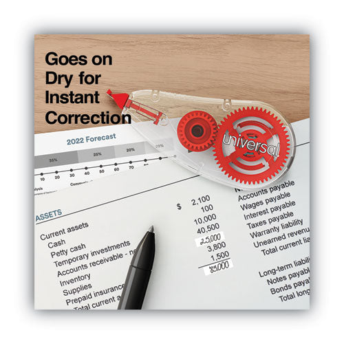 Correction Tape Dispenser, Non-Refillable, Transparent Red Applicator, 0.2" x 315", 2/Pack