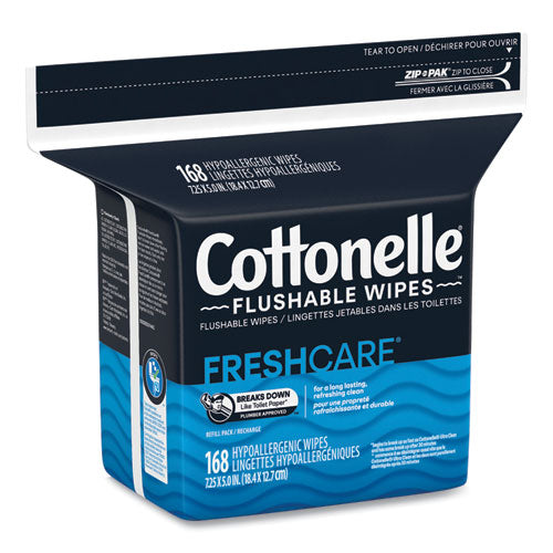 Fresh Care Flushable Cleansing Cloths, 1-Ply, 5 x 7.25, White, 168/Pack