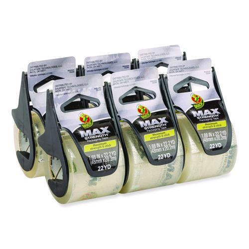 MAX Packaging Tape with Dispenser, 1.5" Core, 1.88" x 22 yds, Crystal Clear, 6/Box