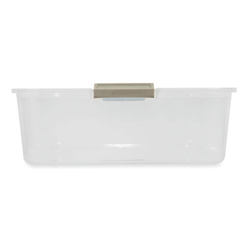 Stack and Pull Latching Flat Lid Storage Box, 3.23 gal, 10.9" x 16.5" x 6.5", Clear/Translucent Blue