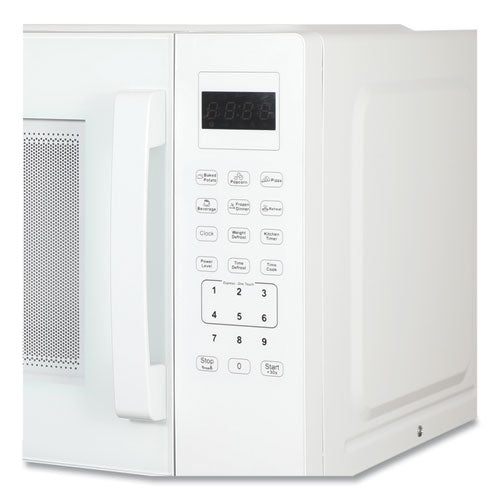 Save counter space with this compact, 1.5 cubic foot, 1,000 watt microwave oven. Its compact footprint allows you to fit it into tight corners and onto cramped countertops, making it ideal for dorm rooms, offices, RVs, tiny homes or anywhere you might need to cook food fast. Electronic control panel features six "express" one-touch cook settings: Baked Potato, Beverage, Frozen Dinner, Pizza, Popcorn and Reheat for quick and easy operation. Standard cook by power level and time as well as defrost by weight and time functionality, along with a handy "Add 30-seconds" control round out your options. Removable glass turntable simplifies cleaning tasks.