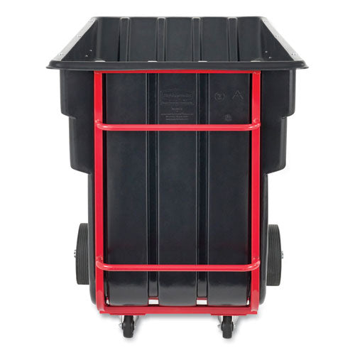 Rubbermaid Commercial Rotomolded Tilt Truck features industrial-strength construction and several use-convenience features to transport the heaviest loads easily and reliably. Constant force fulcrum design allows for controlled dumping by one person, and the DuraTilt™ steel frame allows the truck to stay stable while in the tilted position, making both the dumping and cleaning process easier than it would be with traditional metal frames. Seamless, one-piece molded-plastic body won't rust, dent, pit, chip or peel, making it a snap to clean and maintain. Center-mount, 5-inch swivel-back casters and inset, 12-inch blow-molded polypropylene wheels ensure easy maneuvering down hallways, through doorways and onto elevators, while they and the steel frame remain fully set back from the truck's body to minimize the potential for damaging walls, corners and anything or anyone that might be in the vicinity. Optional domed lids sold separately.Note: This is a non-returnable item.
