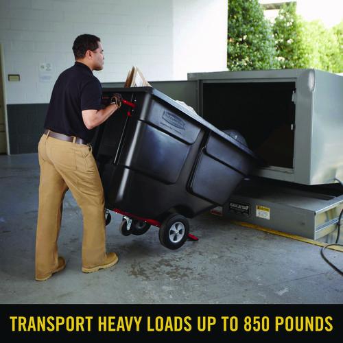 Rubbermaid Commercial Rotomolded Tilt Truck features industrial-strength construction and several use-convenience features to transport the heaviest loads easily and reliably. Constant force fulcrum design allows for controlled dumping by one person, and the DuraTilt™ steel frame allows the truck to stay stable while in the tilted position, making both the dumping and cleaning process easier than it would be with traditional metal frames. Seamless, one-piece molded-plastic body won't rust, dent, pit, chip or peel, making it a snap to clean and maintain. Center-mount, 5-inch swivel-back casters and inset, 12-inch blow-molded polypropylene wheels ensure easy maneuvering down hallways, through doorways and onto elevators, while they and the steel frame remain fully set back from the truck's body to minimize the potential for damaging walls, corners and anything or anyone that might be in the vicinity. Optional domed lids sold separately.