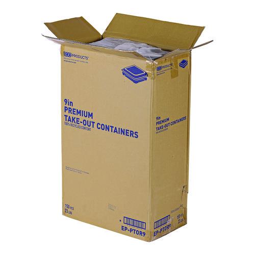 Stylish, attractive container may be used for hot or cold foods. Standard design accommodates a wide variety of to-go items. Clear lid with label panel simplifies order recognition. Made entirely from post-consumer recycled plastic bottles, these recycled content Premium Take-Out Containers perform just like traditional plastic, without relying on virgin materials. Choosing these recycled content Premium Containers can help save resources, help keep waste out of landfills and let you make a more sustainable choice.Note: This is a non-returnable item.
