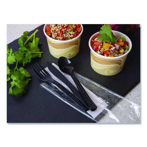 Simplify your place setting requirements with robust, break-resistant cutlery kits. Made from dense, heavyweight polystyrene, these kits are designed to handle very hot foods without issue. Each kit includes a fork, knife, spoon, and soup spoon, ensuring all your dining needs are met. With these cutlery kits, you'll be well-equipped for large gatherings or frequent use. Enjoy the convenience and durability of these high-quality utensils, making every meal service effortless and reliable. Perfect for events, catering, or daily dining, these kits offer both strength and practicality in one easy step.Package Includes: Includes 250 cutlery kits containing a fork, a knife, a spoon and a soup spoon.