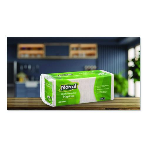 100% Recycled Lunch Napkins, 1-Ply, 11.4 x 12.5, White, 400/Pack