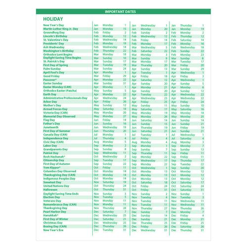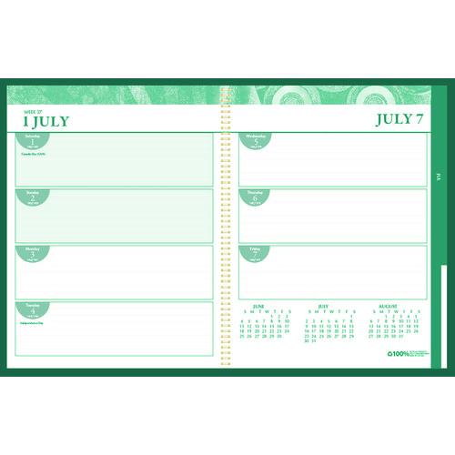 Each month features a die-cut tab for easy reference and also has a note section to keep you organized. This monthly/weekly planner features 12 months, July to June, a two-page weekly spread with open scheduling and monthly two-page spread. The bright green two-piece recycled cover complements the gold embossed logos with gold recycled wire binding for a richer look. Includes a three-year reference calendar page and a three-year holiday page. Go sustainable with House of Doolittle products, we print on recycled paper with soy-based inks. Since 1989 House of Doolittle has donated 5% of its profits to organizations that are working to create a more sustainable environment.Note: This is a non-returnable item.