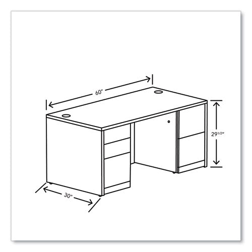 Hard-working, good-looking and built to survive a lifetime of overtime. 10500 Series™ Double Pedestal Desks feature premium, scratch-and stain-resistant, thermal fused laminate surfaces that stand up to just about anything: dropped objects, spills, even boiling liquids. All drawers operate on smooth-rolling ball-bearing suspension systems to ensure reliable access to your materials. File drawers extend fully and accommodate letter- or legal-size hanging files; spacious box drawers extend three-quarters. Clean, square corners and flat-edge profiles deliver a classic, streamlined look that integrates seamlessly with almost any HON® office suite or workstation component. HON® "One Key" core removable locks make re-keying quick and easy. Full-height modesty panel provides extra privacy, and two worksurface grommets make it easy to route and conceal your cables and power cords.Note: This is a non-returnable item.