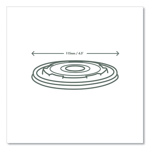 Flat lid for Vegware™'s 115-Series soup containers. A practical no-hole lid for hot soups or stews. Made from CPLA, a renewable material made from plants. Award-winning quality by Vegware™, made from plants. Commercially compostable where accepted.