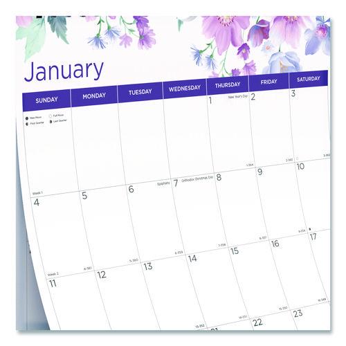 Colorful 12-month wall calendar, January to December. One month per page and one block per day. Calendars of past and next month on each page. Gold twin-wire binding with eyelet to suspend. Reinforced chipboard backer. Features important dates and events, Julian dates, and lunar phases.Note: This is a non-returnable item.