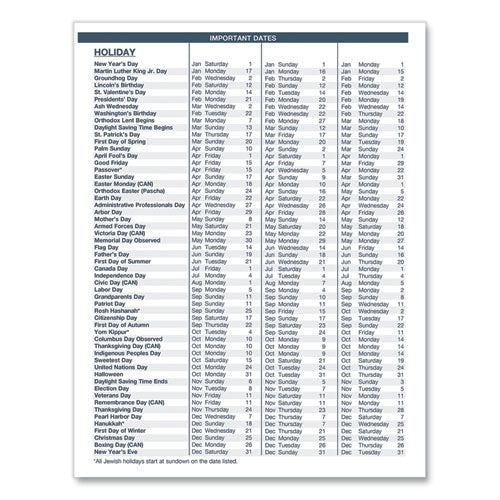Monthly page spread enables you to see your entire month's schedule. Each page features a note section and a two-month reference calendar view for long-term planning. Includes a double-sided storage pocket. Strong wirebound core with an embossed black simulated-leather cover withstands constant use throughout the year. Made entirely of recycled materials.Note: This is a non-returnable item.
