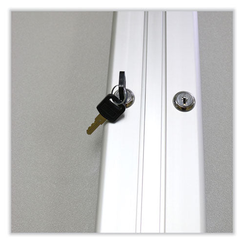 Ghent's Enclosed Vinyl Bulletin Board is the perfect way to display messages, pictures, and important information securely. The message center is made with a vinyl tack surface that hides pin holes and holds up under repeated tacking, providing years of reliable service. When used outside, this vinyl board will not break down or mold, unlike cork enclosed boards. You do not have to worry about damage from weather or humidity as long as you hang the board under an awning or overhang. This enclosed bulletin board is protected using shatter-proof acrylic panels, full-length door hinges, and locks that are flush with the frame. You can install the board in high-traffic, public areas without worrying about damage or tampering. Hidden corner brackets allow the message center to sit flush against the wall without any visible hardware which adds protection from vandalism. The colored vinyl surface is paired with a satin aluminum frame and includes two keys. Perfect for indoor and outdoor use.Package Includes: (2) KeysNote: This is a non-returnable item.