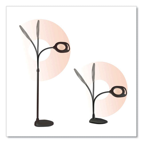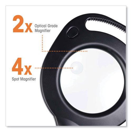 The best in LED illumination combined with two optical grade magnifiers. The 2-in-1 LED Magnifier Floor and Table Light combines 30 Super Bright Natural Daylight LEDs with optical grade magnifiers and a rugged built-in handle so you have hands-free magnifying light exactly where you need it. Plus, it includes a conversion kit allowing for easy conversion from a floor lamp to a table-top model. It's like having two lamps in one! 5" diameter, 2x optical grade magnifier with 4x spot magnifier.Note: This is a non-returnable item.