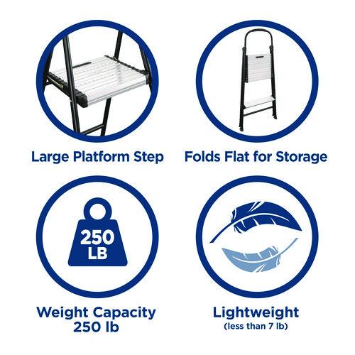 Cosco Two-Step Folding Step Stool is ideal for most tasks around the office. Whether it's reaching that high cabinet or washing the windows, our products make it easier to get any job done. This lightweight step stool provides security and stability to any job. Smart. By Design.Note: This is a non-returnable item.