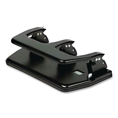 20-Sheet Heavy-Duty Three-Hole Punch, Oversized Handle, 9/32" Holes, Steel, Black