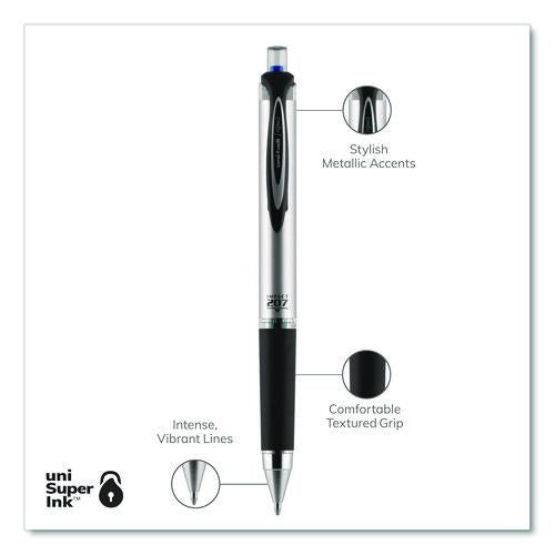 Make an impact with 207 IMPACT RT Gel Pens from uni-ball featuring a 1.0 mm bold point with a stainless steel tip that resists bending and breaking. Even-flowing, pigment-based gel ink renders an outstanding ink laydown for a smooth writing experience and strikingly bold lines. Use these retractable gel pens for everyday writing tasks, check signing and all of your important signatures, trusting its quick-drying uni Super Ink. Exclusive uni Super Ink technology entrenches the gel ink deep into the paper, preventing document alteration, water damage or fading. The 1.0 mm point delivers bold writing with a silky finish. A soft rubber grip helps you continue writing without fatigue while maintaining precision and detail throughout your tasks, and when your writing is complete, the innovative clip auto retracts the tip, protecting against unwanted gel ink marks and stains. Lend a vivid touch to your writing with these sophisticated retractable gel pens that glide smoothly for distinct and neat writing.