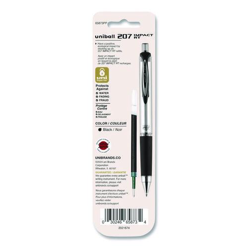 Make an impact and maintain it with 207 Impact RT Gel Retractable Pen Refills. They're designed specifically for the sophisticated and stylish 207 Impact RT Gel Retractable Pen. Each refill features even-flowing, pigment-based gel ink to deliver the same outstanding ink laydown and luxurious writing experience that you've come to expect. Whether you're signing important documentation, developing records for an archive or simply performing everyday writing tasks, you can also trust its quick-drying uni Super Ink technology to entrench your marks deep into the paper to prevent document alteration, water damage and fading. Its ultra-durable stainless-steel tip provides excellent bend and break resistance, while its smooth-glide point helps you produce the pronounced lines and lettering that make 207 Impact Gel Pens a professional's first choice.