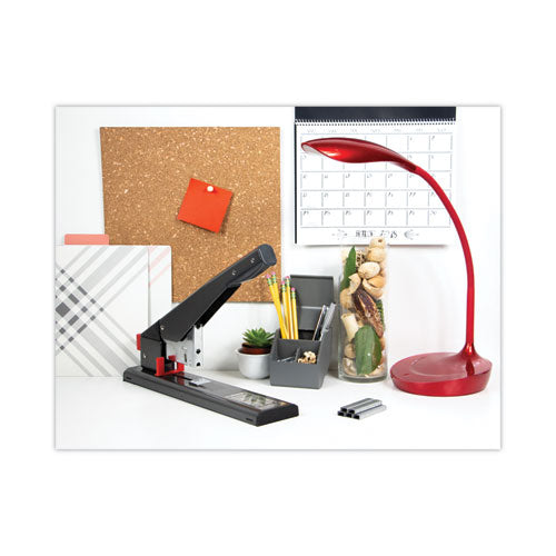 The Bostitch Heavy-Duty Stapler is the perfect stapler for heavy-duty stapling jobs. Stapling up to 215 sheets of paper, it's the perfect workhouse for all kinds of business and office environment. It's often seen at accounting firms, insurance offices, schools, print shops and anywhere that requires large stapling jobs. In high traffic environments where multiple people are using the community office supplies and equipment, germs can pass easily from one person to the next. Made with durable all-metal construction, this stapler is sure to last a long time and withstand a great of stapling. Its anti-jam mechanism virtually eliminates staple jams, making every day stapling easy.