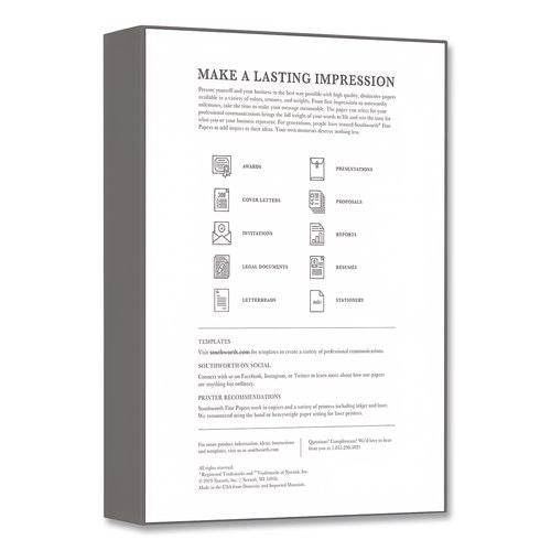 High volume legal or professional service offices can rely on the consistency and longevity of this 25% cotton sheet. Its super-smooth surface brings cotton elegance to any document output on high-speed copier or laser printer. Moisture controlled to prevent curling. Acid- and lignin-free.