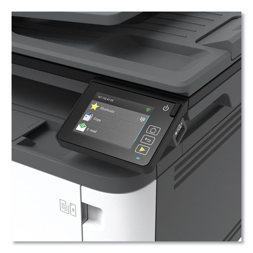Built with the essential features small workgroups need, the MX431adw multifunction supports output up to 42 pages per minute, plus double-side automatic scanning, copying and faxing. Light and compact, it fits almost anywhere and lets you connect via USB, Ethernet and Wi-Fi. The 2.8" color touch screen includes built-in cloud connectivity to enhance workflow. Standard two-sided printing saves paper, while Lexmark full-spectrum security helps protect your network and proprietary information. Add an optional 550-sheet paper tray or available Extra High Yield Unison™ toner offering up to 20,000 pages of output for longer print runs and greater media flexibility.Package Includes: Setup Guide; Software and Documentation CD; Return Program Imaging Unit up to 40,000 Pages; Return Program Toner Cartridge up to 3,000 Pages; Stability Sheet; Safety Sheet; Statement of Limited Warranty/Guarantee; Power cord(s)