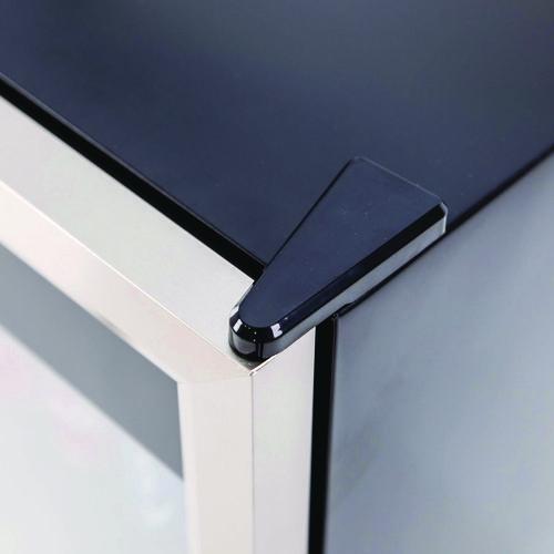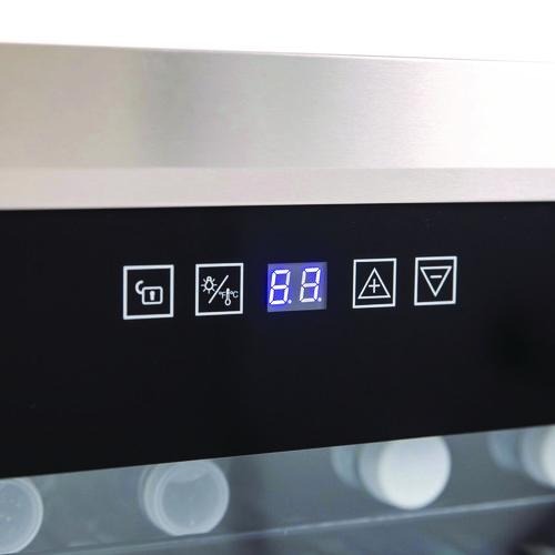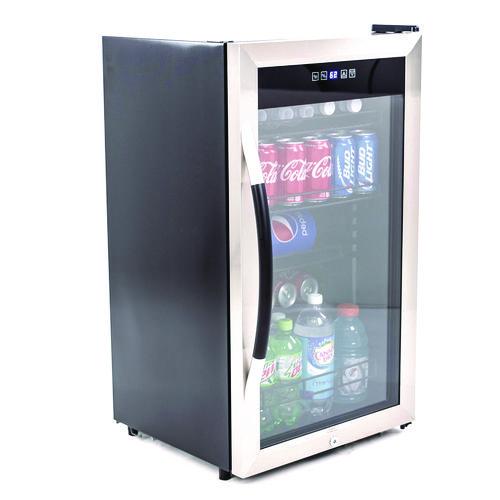 Ideal for the office, breakroom, cafeteria or other shared space. Three adjustable, removable shelves let you customize the interior to hold bottles or cans, and the built-in light illuminates the interior for better visibility. A clear front panel lets you see what's stored inside without having to open the door, preventing fluctuations in temperature. Use the soft-touch control panel and LED display to monitor and adjust the conditions inside this beverage cooler.