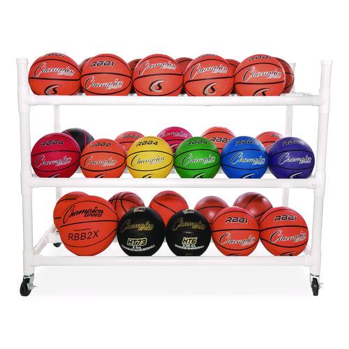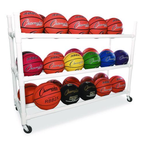 The Champion Sports Heavy Duty Cart is the ultimate in indoor and outdoor ball storage. This cart holds up to 30 basketballs and the four upright top bars are great for hanging accessories. Made of high-quality heavy-duty plastic that won't corrode, chip or peel. This cart features non-marring, heavy-duty swivel casters that enable easy and smooth transport over any surface.Note: This is a non-returnable item.