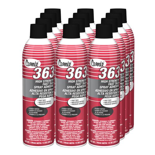 Camie 363 is especially formulated to bond polyethylene to itself, concrete block, wood and many hard-to-bond surfaces. It may also be used to bond paper, cardboard, fabric, urethane foam, foil, metal, wood and most plastics to itself and a variety of other substrates. It may be used either for permanent or temporary bonds and used to bond carpet.Note: This is a non-returnable item.