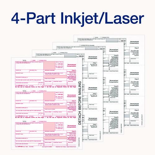 Get what you need to report nonemployee compensation with four-part 1099-NEC form sets, 1096 summary forms and access to Tax Forms Helper®, the fast and easy way to file. In just a few clicks, Tax Forms Helper® allows you to upload your 1099-NEC data directly from QuickBooks® Online or import your details from a previous year. Use 1099-NEC forms to report nonemployee compensation paid to independent contractors and attorneys; and as of 2022, the IRS has made the 1099-NEC a continuous-use form with a fill-in-the-year date field, making it good for multiple tax years. Per the 2023 IRS eFile law, if you're filing 10 or more forms, you'll need to eFile, and Tax Forms Helper® makes it easy to comply with a secure IRS/SSA eFile system. Starting in 2024, the IRS has also removed Copy-C from the 1099-NEC, so use Helper to save digital copies, too!Package Includes: (3) 1096 Summary & Transmittal Forms