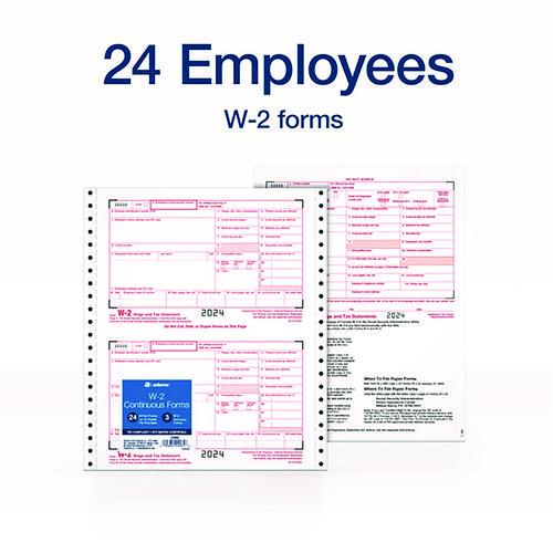 Use Adams® 4-Part W-2 Continuous Feed Tax Forms to report employee wages, tips, taxes and withholdings to the IRS, Social Security Administration and your employees. Four-part, continuous feed W-2 forms are designed specifically for dot matrix printers, and both the included W-3 summaries and the W-2s are printed on acid-free paper with heat-resistant inks to help you produce smudge-free, archival-safe tax forms. Copy A of the W-2s and the W-3 summaries also feature the scannable red ink required by the IRS for paper filing. All Adams® tax forms meet IRS specifications and are QuickBooks® and accounting software compatible.Package Includes: (1) W-3 Summary & Transmittal Form
