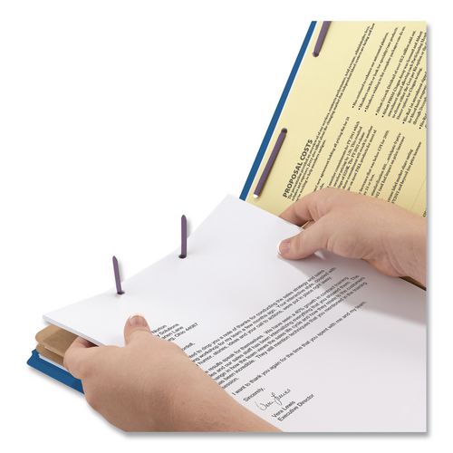 Minimize the time you spend searching for documents and increase the efficiency of your filing system. Smead's Pressboard Classification File Folders with Pocket-Style Dividers and SafeSHIELD Fasteners make it easy to organize your critical information by providing multiple filing surfaces that can be used to separate your documents in subcategories and keep them in proper sequence. Purposefully designed to provide a solution for the most common fastener issues, our Pressboard Classification File Folders feature SafeSHIELD Coated Fasteners that help you avoid hand injuries, ripped papers and excessive fastener crinkling. The 2/5-cut tab in right of center position is compatible with our Viewables Multipurpose Labels (sold separately) and the 2" expanding spine made of tear-resistant material offers greater storage capacity for bulky projects.