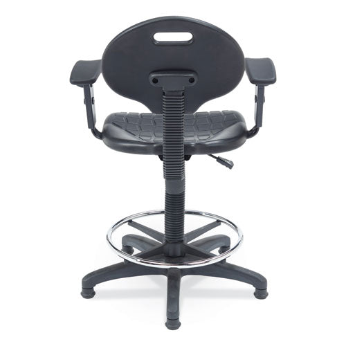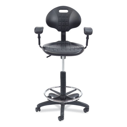 Designed with beauty, strength and functionality in mind, the 6700 Series Adjustable Height Polyurethane Task Stool with Arms from NPS® delivers a unique blend of grace, durability and practicality to fulfill your professional seating demands. Heavy-duty, 1.25-inch thick padded seat features a waterfall edge to provide plush comfort. Puncture- and chemical-resistant polyurethane material cleans easily. Chrome accents enhance the stool's overall aesthetic appeal, while adjustable arms, a comprehensive control set and a seat back handhold grip provide greater comfort and easy maneuverability. Ships with both casters and glides to provide additional versatility.Note: This is a non-returnable item.
