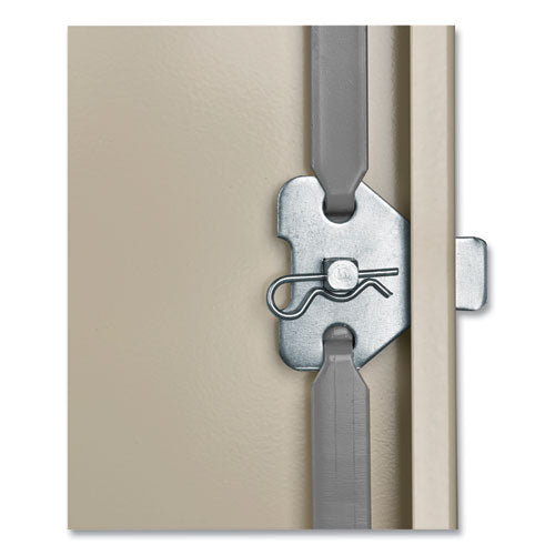 Commercial grade steel storage cabinet. Built with premium quality steel and reinforced doors for long-term performance at an attractive price. Polished chrome handle uses three-point keyed locking to lock both doors. Storage cabinet is electrostatically painted with a tough, long lasting powder finish to ensure years of lasting beauty.