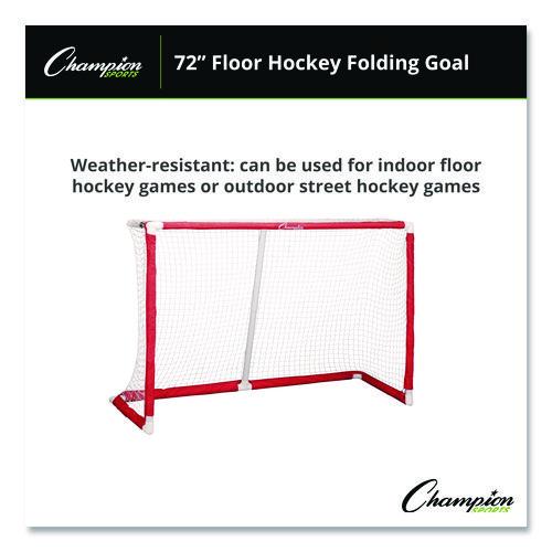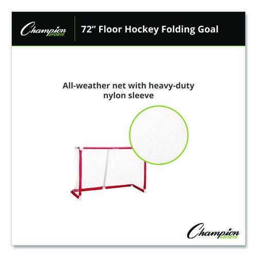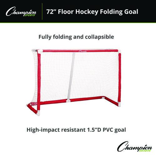 Made with 1.5" PVC material and a heavy-duty nylon sleeve, the Champion Sports 72 Inch Floor Hockey Collapsible Goal is weather-resistant, meaning it can be used for indoor floor hockey games or outdoor street hockey games. The custom fittings and fully foldable design allow the top and bottom of the hockey net to collapse into a convenient size for storage and transportation, making it simple to move from the playground or the court to storage.Note: This is a non-returnable item.